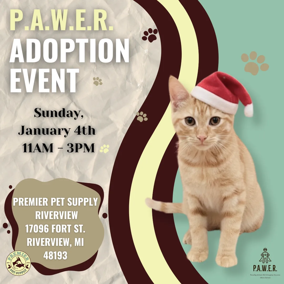 Providing Animals With Emergency Resources (P.A.W.E.R.) is hosting an adoption event at Premier Pet Supply Riverview on Sunday, January 4th, from 11:00 a.m. to 3:00 p.m.!