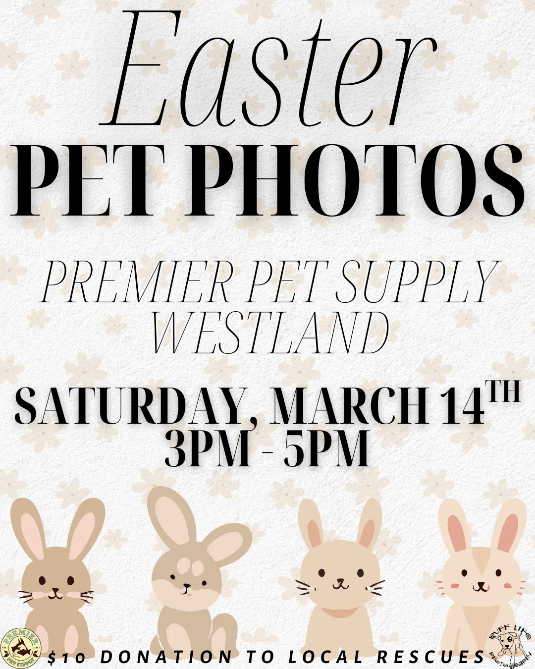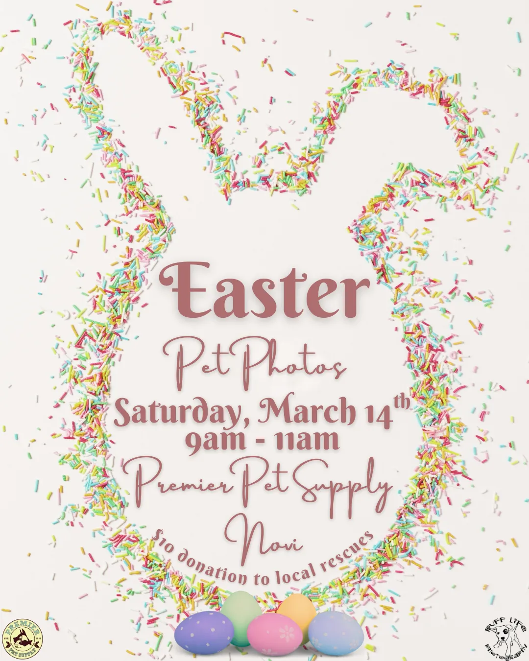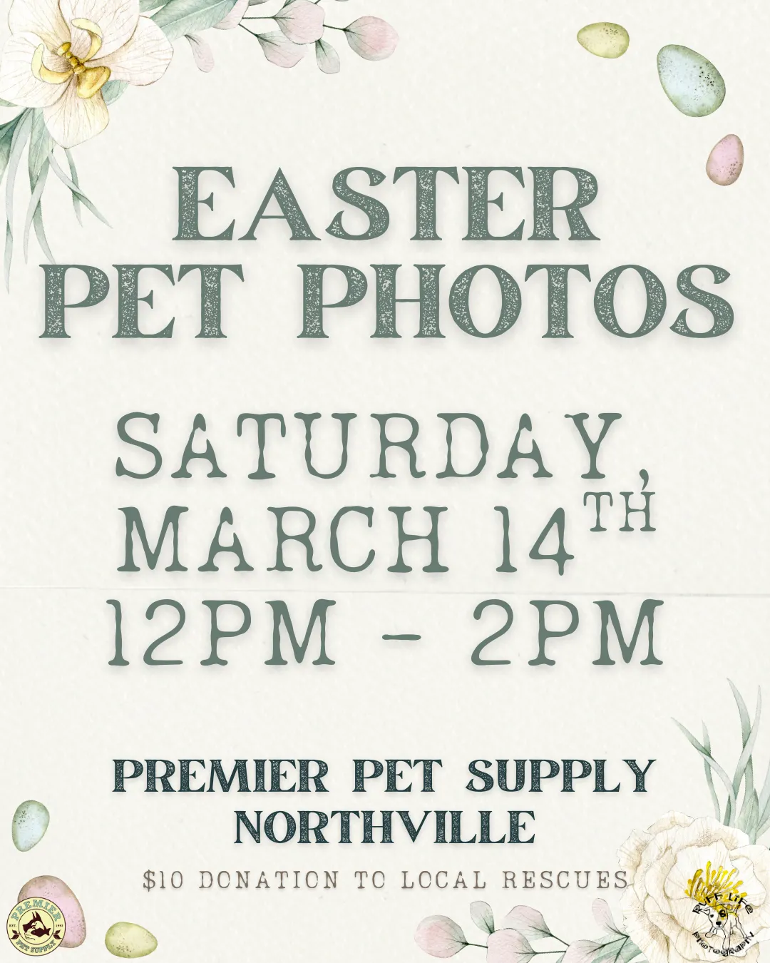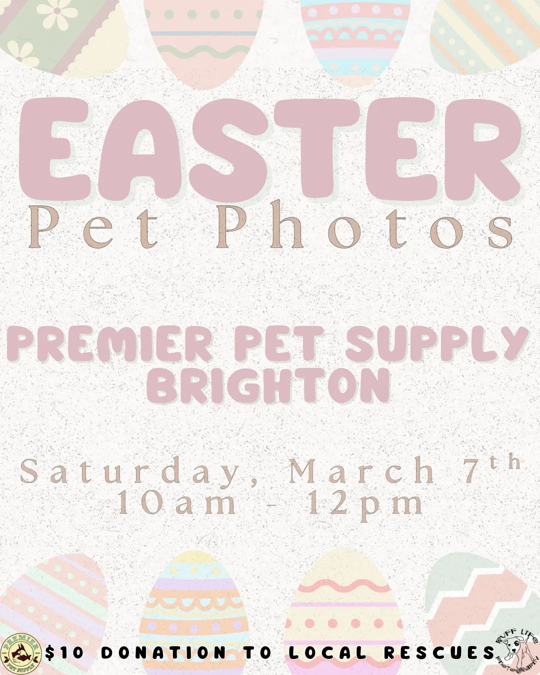 🐰 Somebunny told us your pets want to get their Easter photo taken at Premier Pet Supply 🐰 Join us for Pet Photos with the Easter Bunny at Premier Pet Supply Brighton! Ruff Life Photography will be here on Saturday, March 7th, from 10am - 12pm! Photos are $10 each, with all proceeds being donated to local rescues! Plus, you go home with a printout of your pet's adorable photo! *Please note that our photo events can be extremely busy. Please ensure you have enough adults with you to handle any kids or pets*