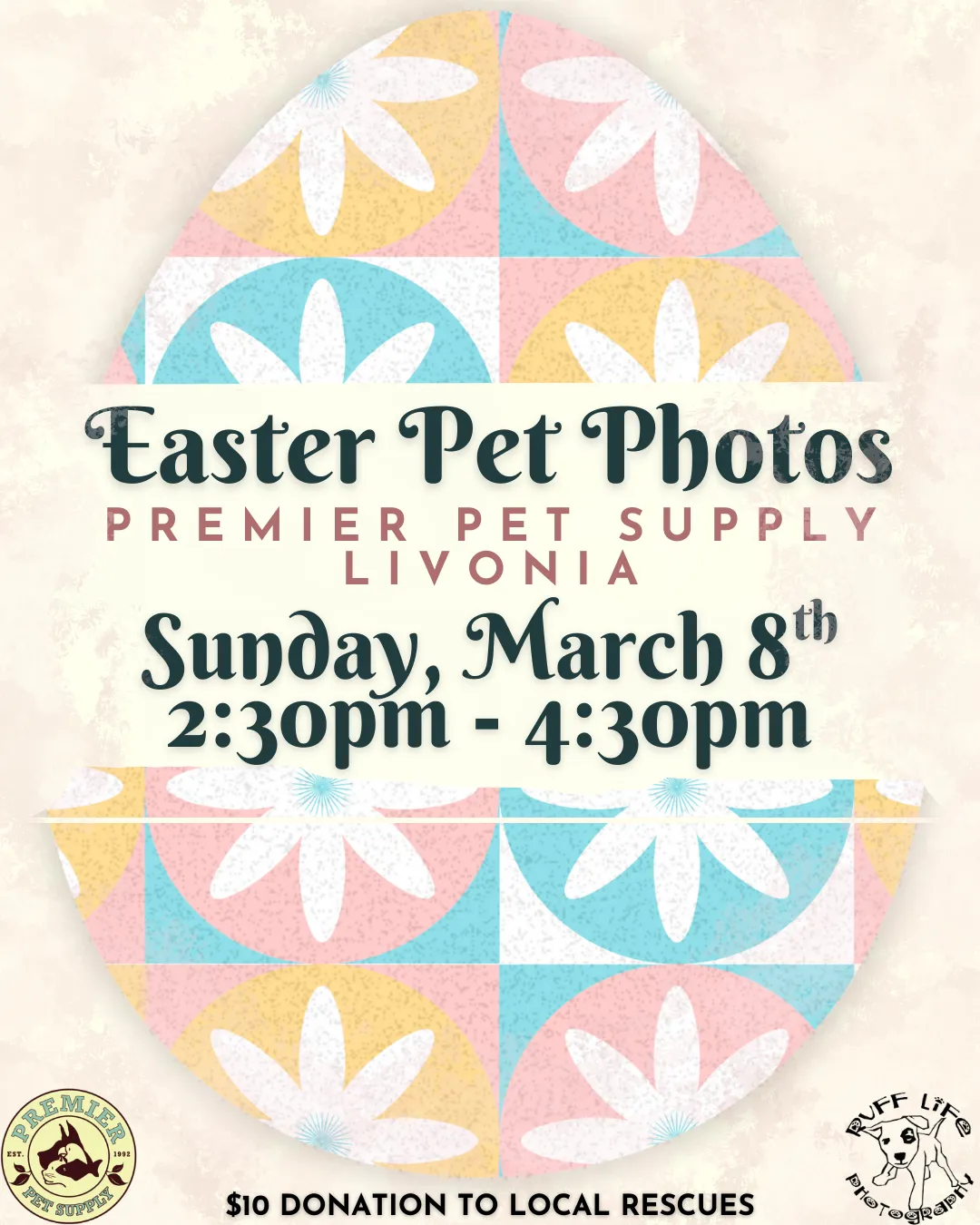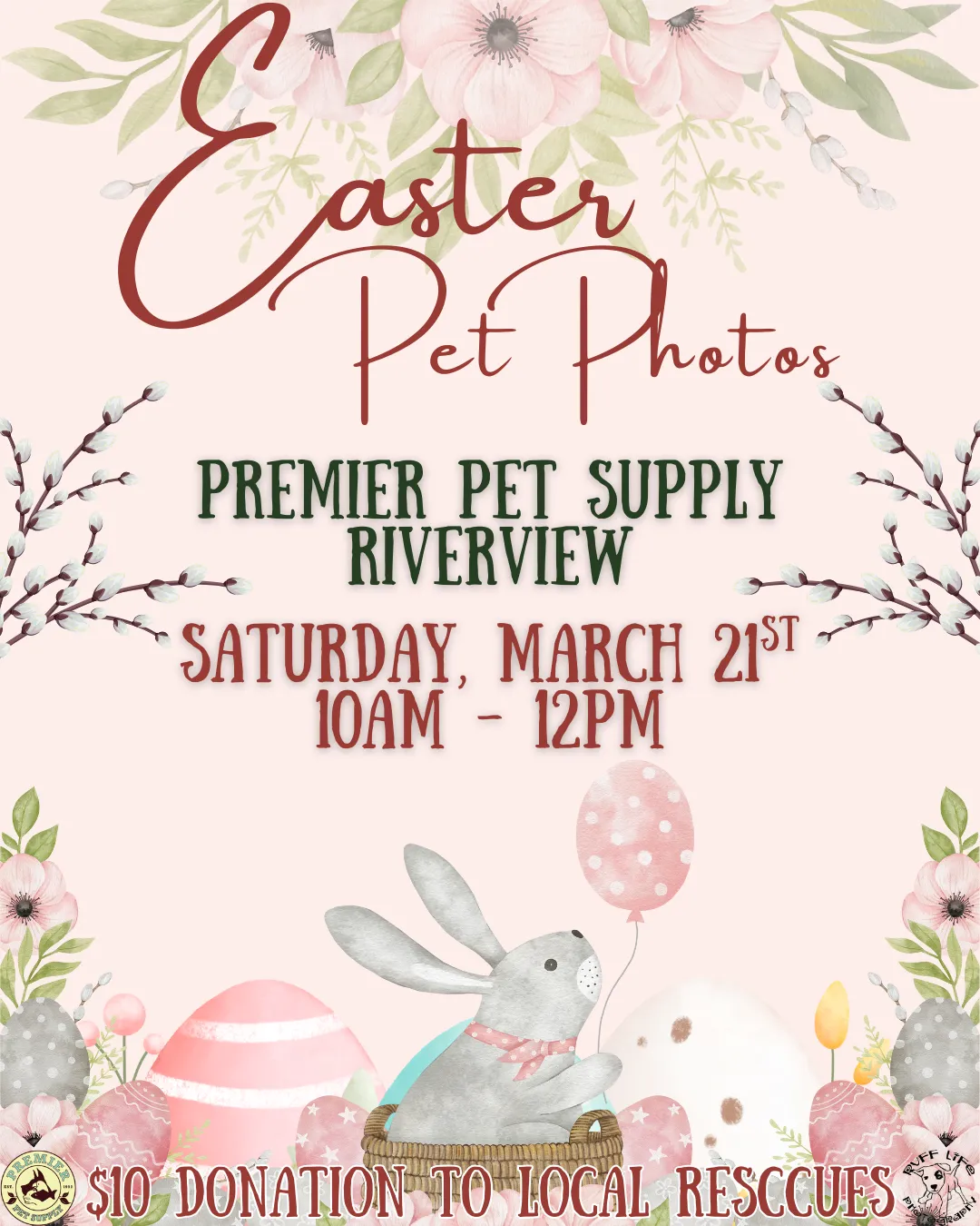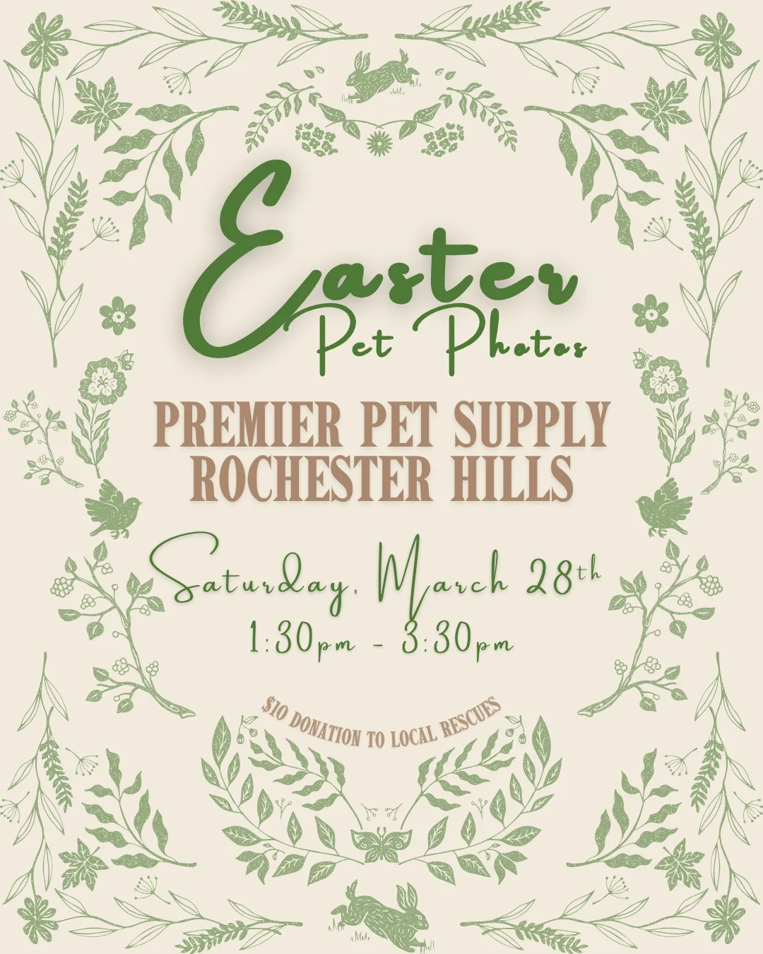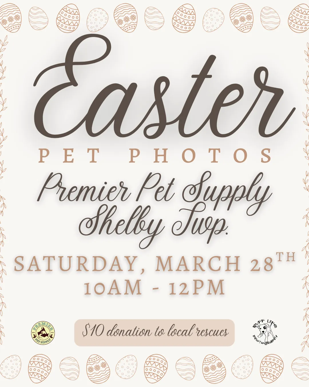 🐰 Somebunny told us your pets want to get their Easter photo taken at Premier Pet Supply 🐰 Join us for Pet Photos with the Easter Bunny at Premier Pet Supply Brighton! Ruff Life Photography will be here on Saturday, March 7th, from 10am - 12pm! Photos are $10 each, with all proceeds being donated to local rescues! Plus, you go home with a printout of your pet's adorable photo! *Please note that our photo events can be extremely busy. Please ensure you have enough adults with you to handle any kids or pets*
