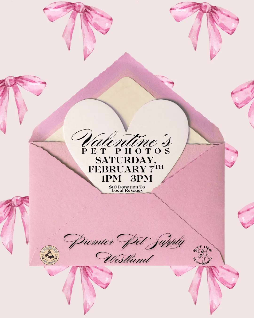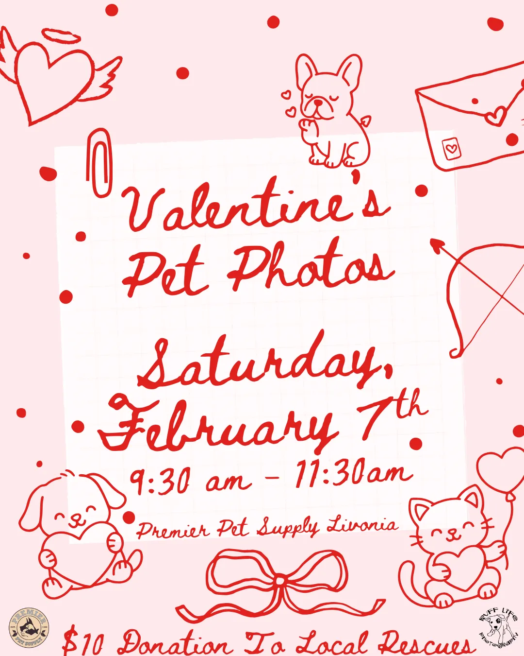 💗 Join us for Valentines-Themed Pet Photos with Ruff Life Photography at Premier Pet Supply Westland Photos will be on Saturday, February 7th, from 1pm - 3pm! Each photo is a $10 donation to a local rescue, plus you go home with a printout of your pet's adorable photo! 💗 *Please note that our photo events can get very busy. Please ensure you have enough adults to handle any kids or pets with you*
