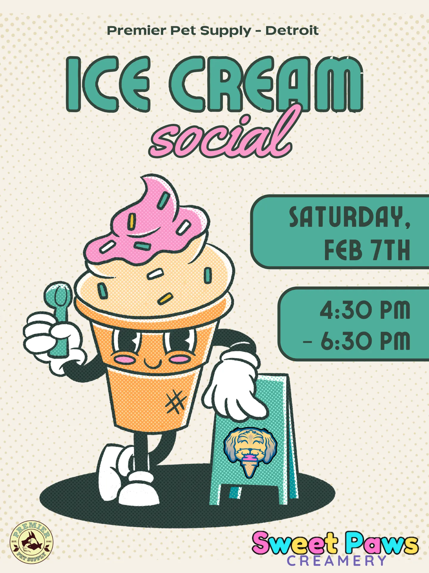 🍦 Life can be ruff; your pup deserves a sweet little treat! 🍦 Join us for an Ice Cream Social with Sweet Paws Creamery at Premier Pet Supply Detroit! 📅 Saturday, February 7th⏰ 4:30–6:30 PM Stop by during our Valentine’s photo event to snap an adorable pic of your pet, then celebrate with a sample of Sweet Paws Doggy Ice Cream—locally made in small batches using sustainably grown Michigan produce. 🐾Limited ingredients, big-time flavor!